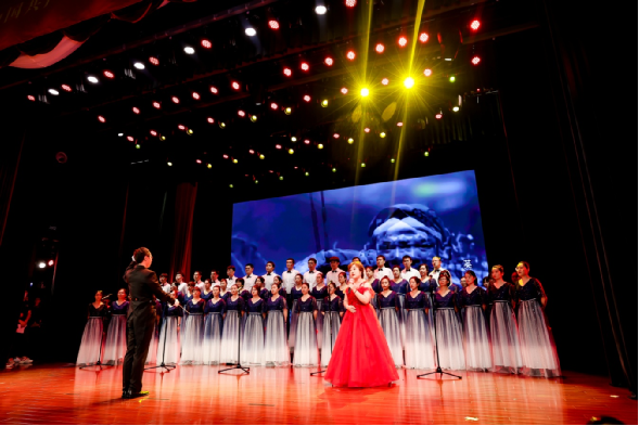 表彰中間,來自集團各條戰(zhàn)線的員工穿插表演了《長征組歌》《英雄贊歌》《不忘初心 向黨表白》《燈火里的中國》《華夏》《黨建rap》等反映中國共產(chǎn)黨革命、建設(shè)、改革和進入新時代各個時期歷史及黨的十八大以來,在以習(xí)近平同志為核心的黨中央堅強領(lǐng)導(dǎo)下,集團改革發(fā)展和黨建工作取得新成效的精彩節(jié)目,集體合唱《歌唱祖國》把大會推向高潮。